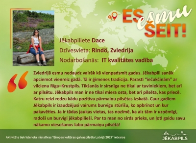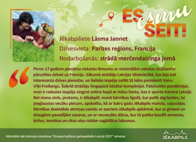 Jēkabpils pilsētas pašvaldība iniciatīvas “Eiropas kultūras galvaspilsēta Latvijā 2027” ietvaros aprīlī izsludināja vispasaules jēkabpiliešu sasaukšanās akciju “Es esmu šeit!”