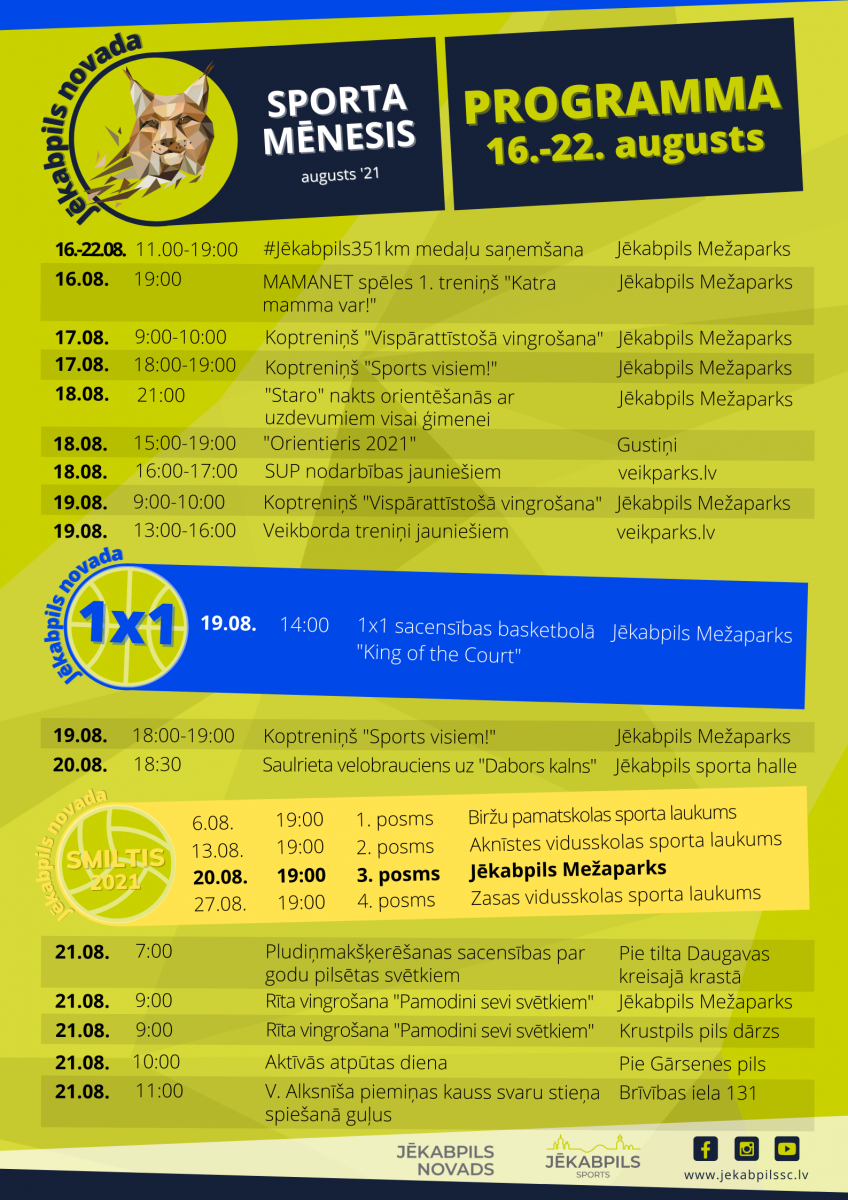 Augusts Jēkabpils novadā būs “Sporta mēnesis” AFIŠAS
