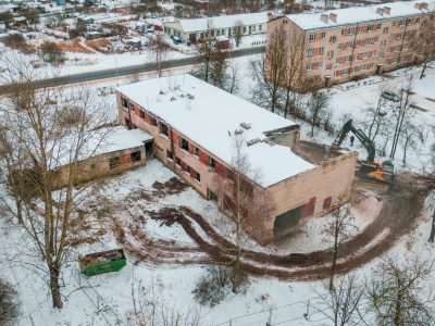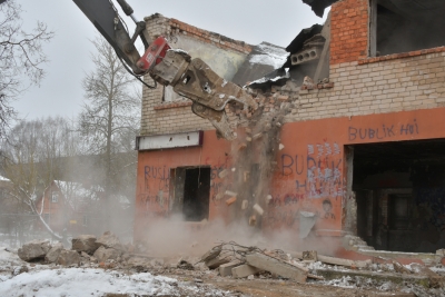 Degradētās ēkas demontāžas darbi Ķieģeļu ielā 9 Jēkabpilī
