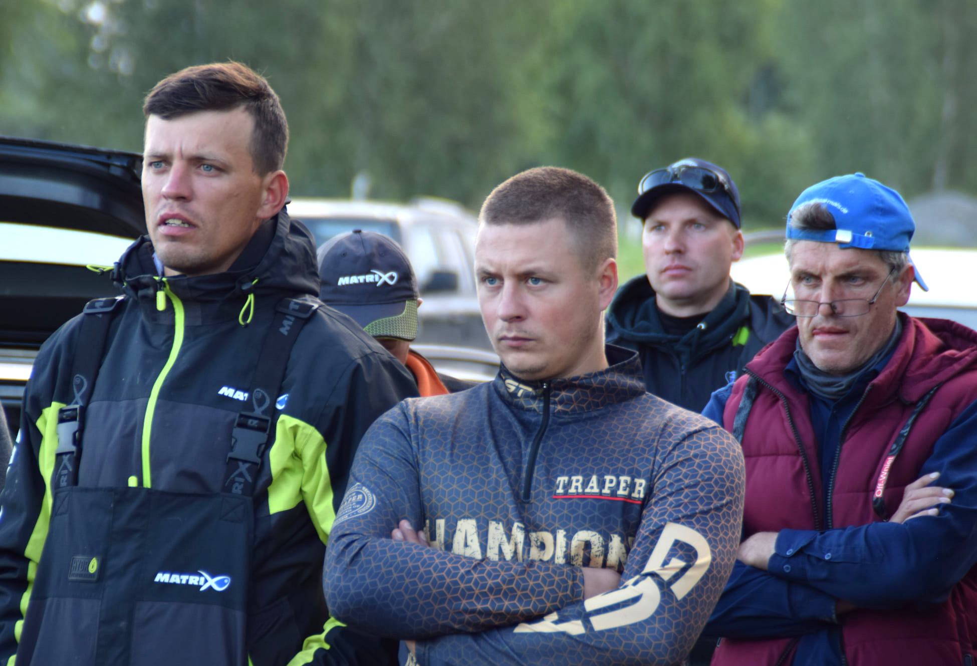 Sacensību dalībnieki fīdermakšķerēšanā Kūku pagasta Baļotes ezerā 2021. gada augustā