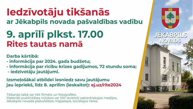 9. aprīlī plkst. 17.00 Rites tautas namā iedzīvotājiem no Rites, Elkšņu, Saukas, Viesītes pagastiem un Viesītes pilsētas būs iespēja tikties ar Jēkabpils novada pašvaldības vadību, speciālistiem,…