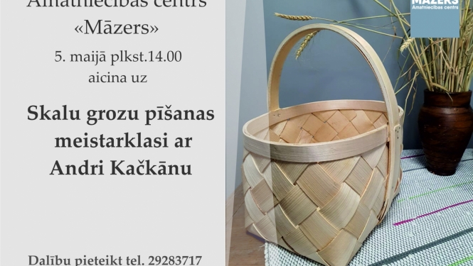 Ikviens interesents ir aicināts piedalīties Amatniecības centra "Māzers" (Vīpes pagastā) organizētajā skalu grozu pīšanas meistarklasē ar Andri Kačkānu.