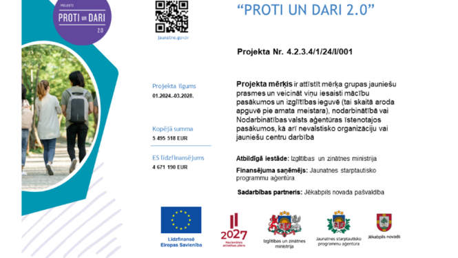 Jēkabpils novada pašvaldība sadarbībā ar Jaunatnes starptautisko programmu aģentūru (turpmāk – JSPA) Eiropas Savienības kohēzijas politikas programmas 2021.–2027.gadam 4.2.3.specifiskā atbalsta…