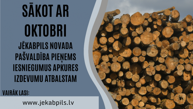 No 3. oktobra Jēkabpils novada pašvaldība sāks pieņemt iesniegumus par atbalstu energoresursu cenu pieauguma kompensēšanai mājsaimniecībām, kas apkurē izmanto malku, granulas vai briketes, kā arī no…