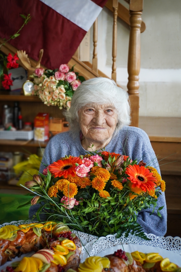 Vēlam jubilārei stipru veselību, iesoļojot otrajā gadu simtenī!