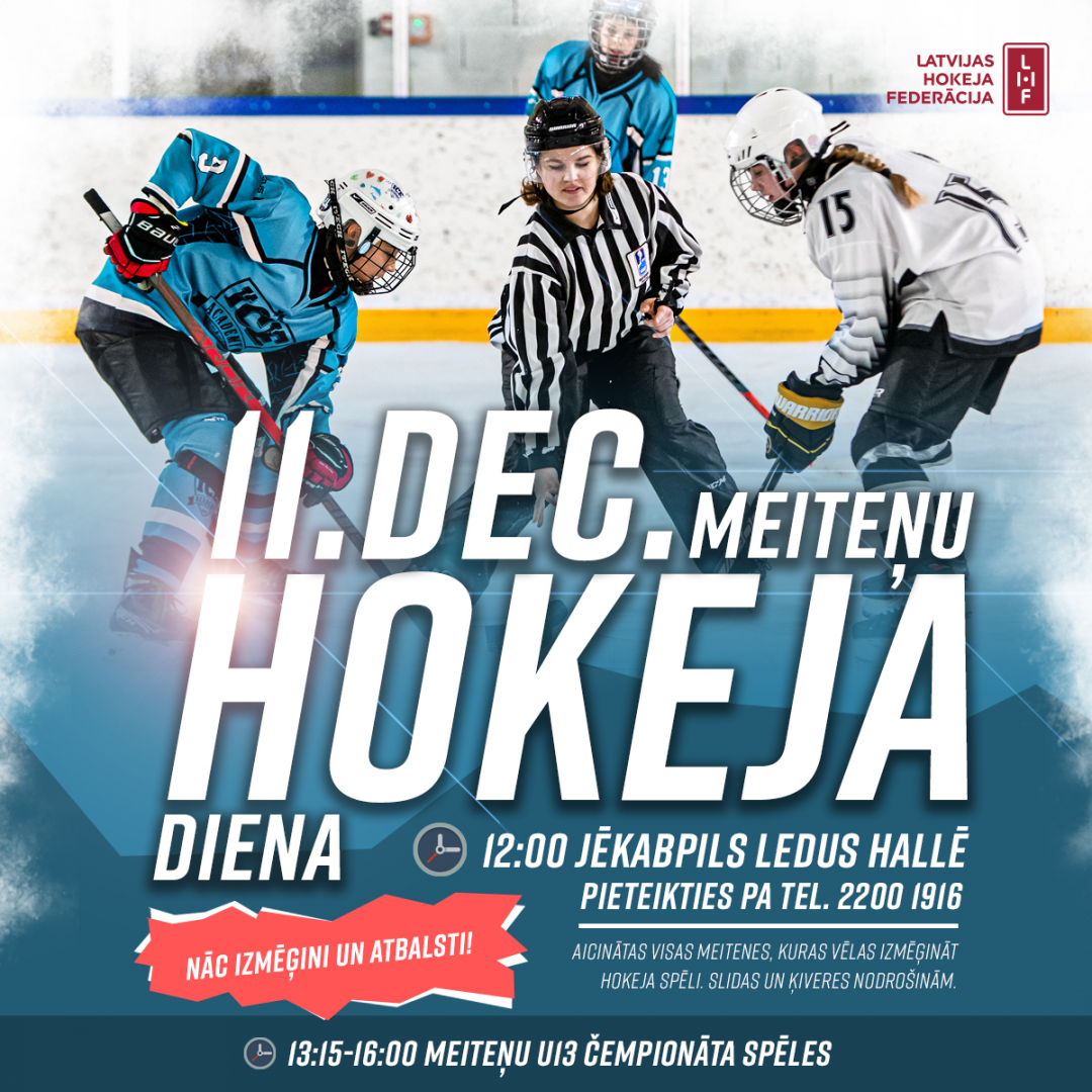 Svētdien, 11. decembrī, ikviena meitene, kas vēlas izmēģināt spēkus hokejā tiek aicināta uz meiteņu hokeja dienu Jēkabpils Sporta hallē! Vēlams iepriekš pieteikties pa tālr.: 22001916.