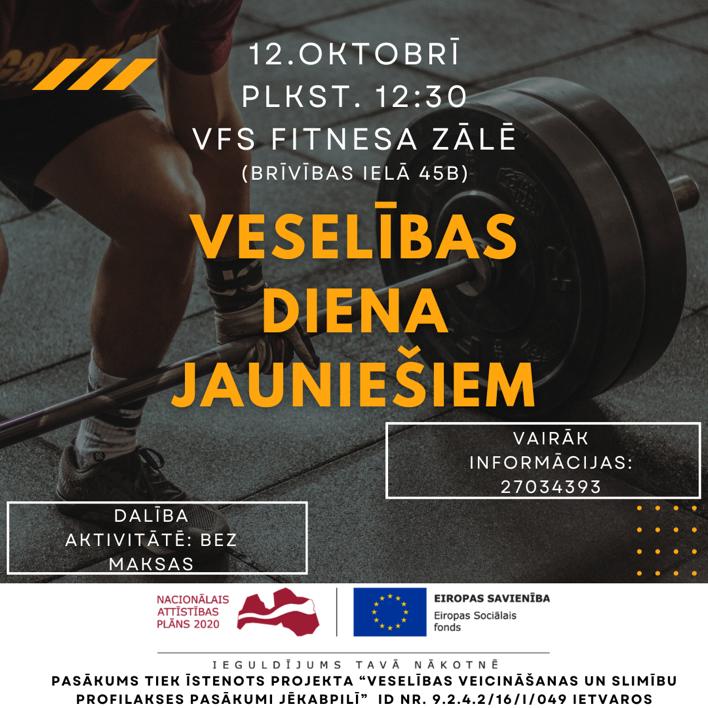 Projekta “Veselības veicināšanas un slimību profilakses pasākumi Jēkabpilī” ietvaros 2023. gada 12. oktobrī "Fitness VFS" telpās, Brīvības ielā 45B, plkst. 12.30 norisināsies “Veselības diena jauniešiem”.