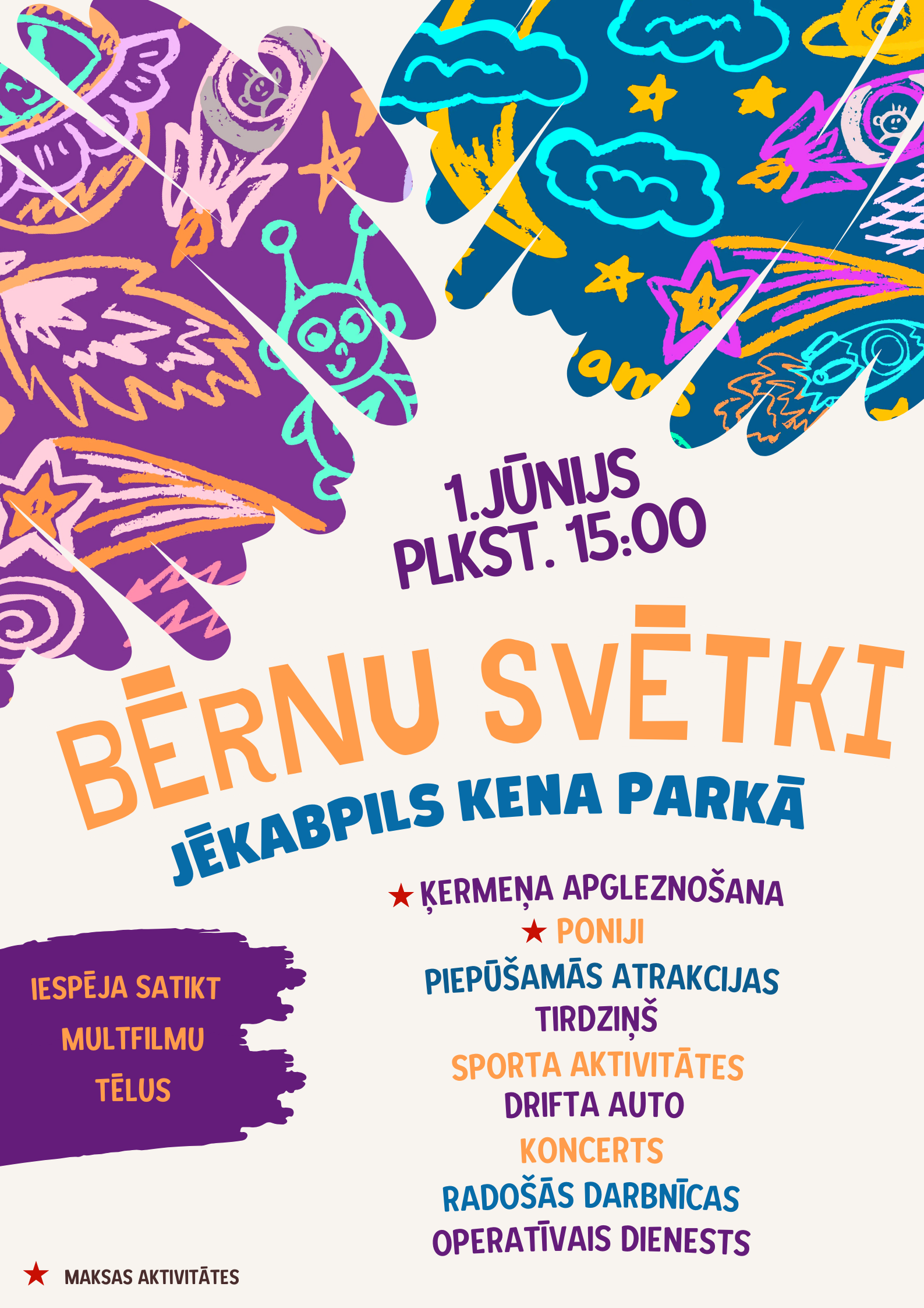 Vasaras pirmais mēnesis - jūnijs - ik gadu tiek iesākts ar Starptautisko bērnu aizsardzības dienu, kas veltīta ikvienam bērnam. Ir jau sācies vasaras brīvlaiks un bērniem jārūpējas par savu un apkārtējo drošību un vienmēr jābūt piesardzīgiem. Jēkabpilī šīs dienas atzīmēšana jau kļuvusi par skaistu un krāšņu, ikgadēju tradīciju. Šogad svētkus svinēsim 1. jūnijā Jēkabpils Kena parkā!