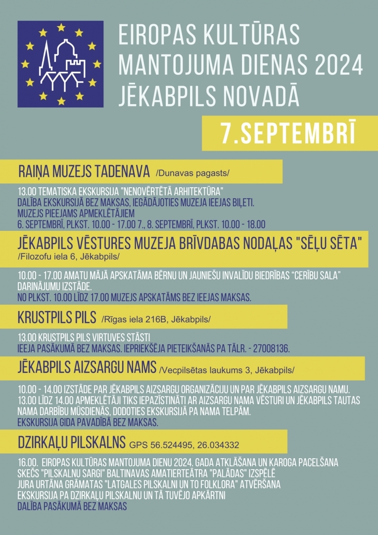 Eiropas kultūras mantojuma dienu programma Jēkabpils novadā: