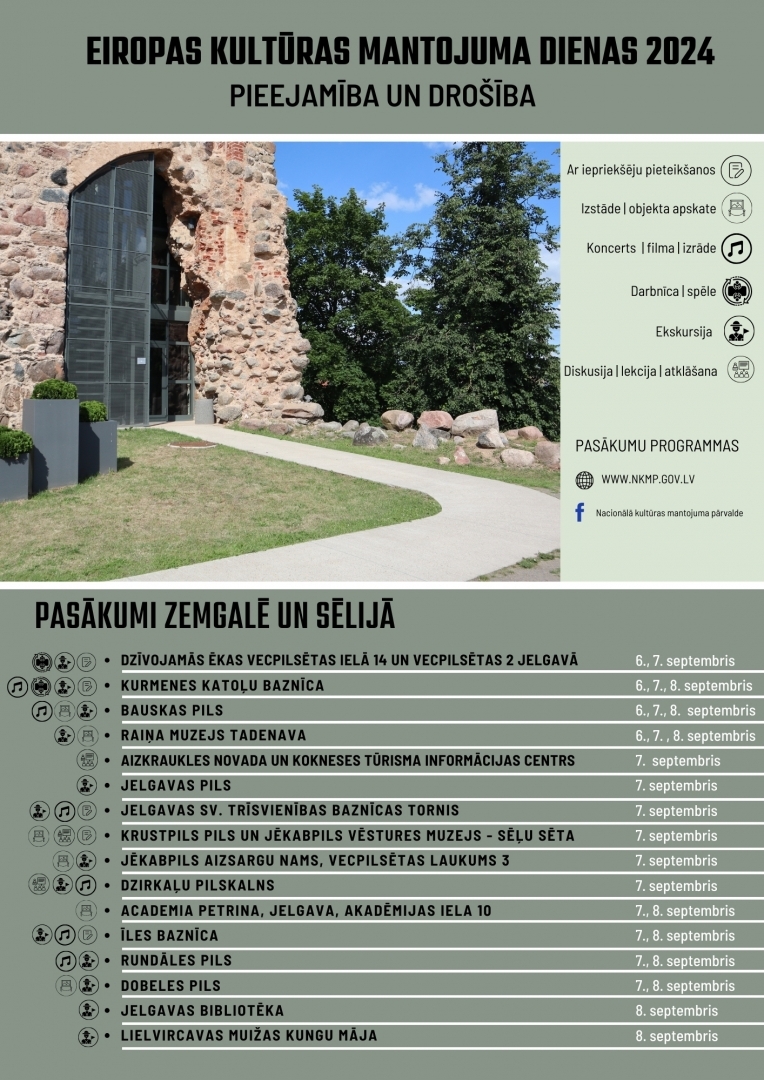 - Eiropas kultūras mantojuma dienu, kas 2024. gadā veltītas kultūras mantojuma pieejamībai un drošībai, atklāšana un karoga pacelšana;