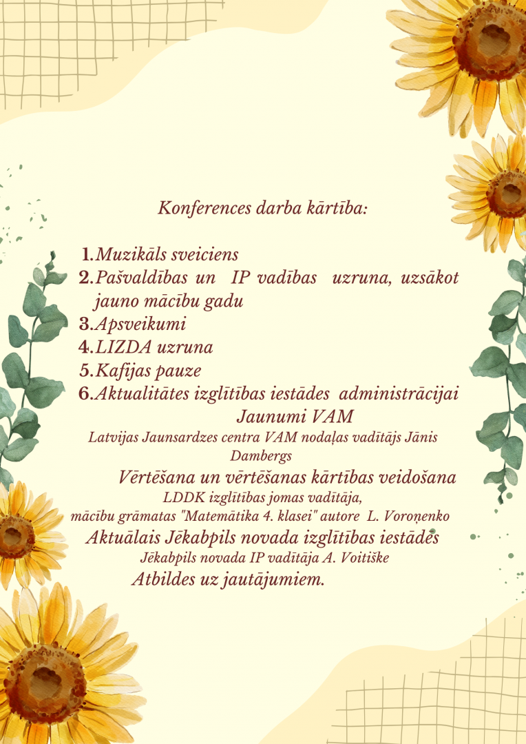 2024. gada 23. augustā plkst. 10.00 Jēkabpils Tautas namā notiks Jēkabpils novada izglītības darbinieku konference.