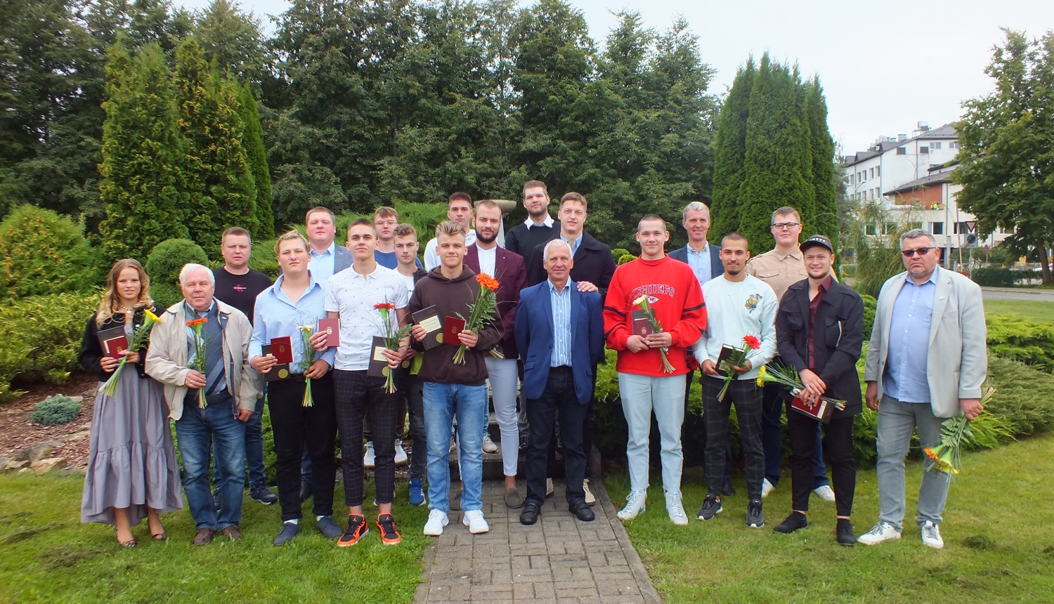 Foto: V30 izglītības programmu absolventi ar treneriem, Jēkabpils Sporta skolas direktoru Edgaru Lambu un Jēkabpils novada pašvaldības priekšsēdētāja vietnieku Alfonu Žuku