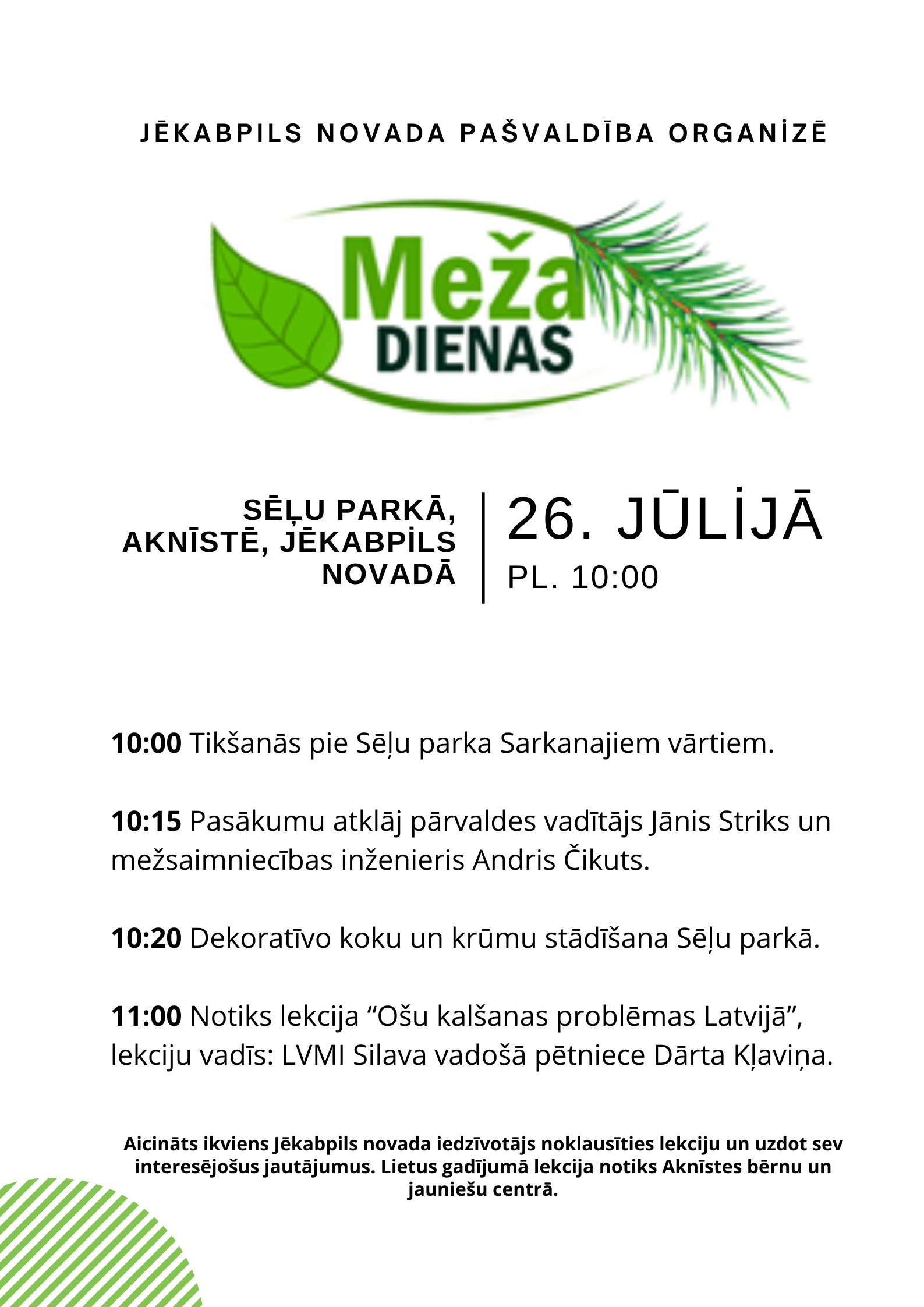 26.jūlijā plkst. 10:00 Sēļu parkā, Aknīstē, Jēkabpils novadā, aicinām uz Meža dienām!