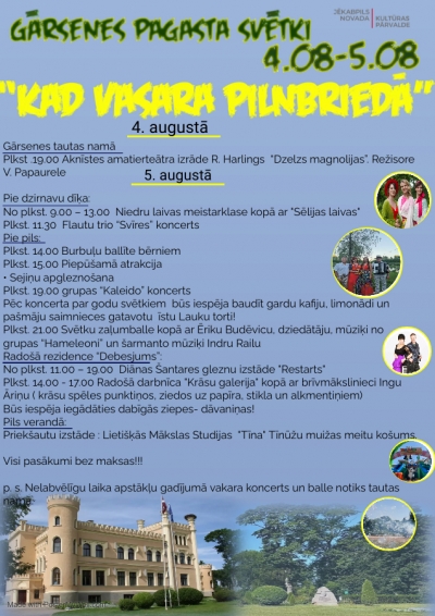 4. un 5. augustā tiks svinēti Gārsenes pagasta svētki.