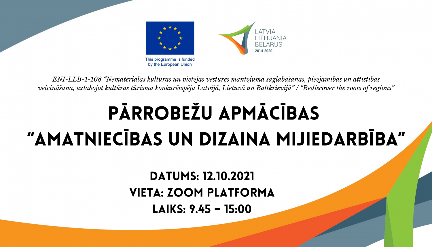 Aicinām uz pārrobežu apmācībām “Amatniecības un dizaina mijiedarbība” projekta ENI-LLB-1-108 “Nemateriālās kultūras un vietējās vēstures mantojuma saglabāšanas, pieejamības un attīstības veicināšana, uzlabojot kultūras tūrisma konkurētspēju Latvijā, Lietuvā un Baltkrievijā” / “Rediscover the roots of regions” ietvaros.