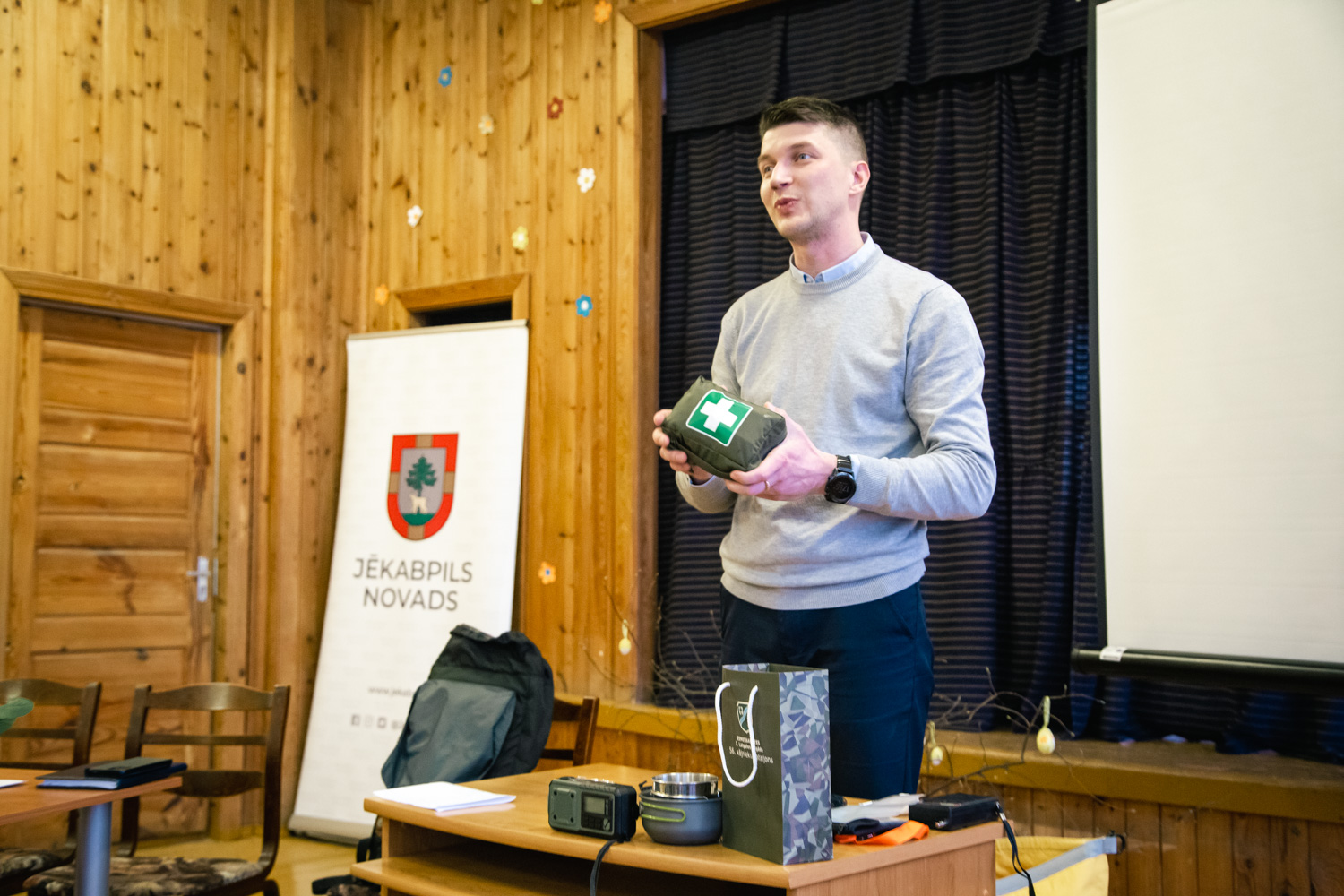 Pašvaldības civilās aizsardzības inženieris Ilmārs Luksts sniedza informāciju par rīcību krīzes gadījumos un kā nokomplektēt 72 stundu somu, kurā vienkopus būtu visas nepieciešamākās lietas krīzes situācijai.