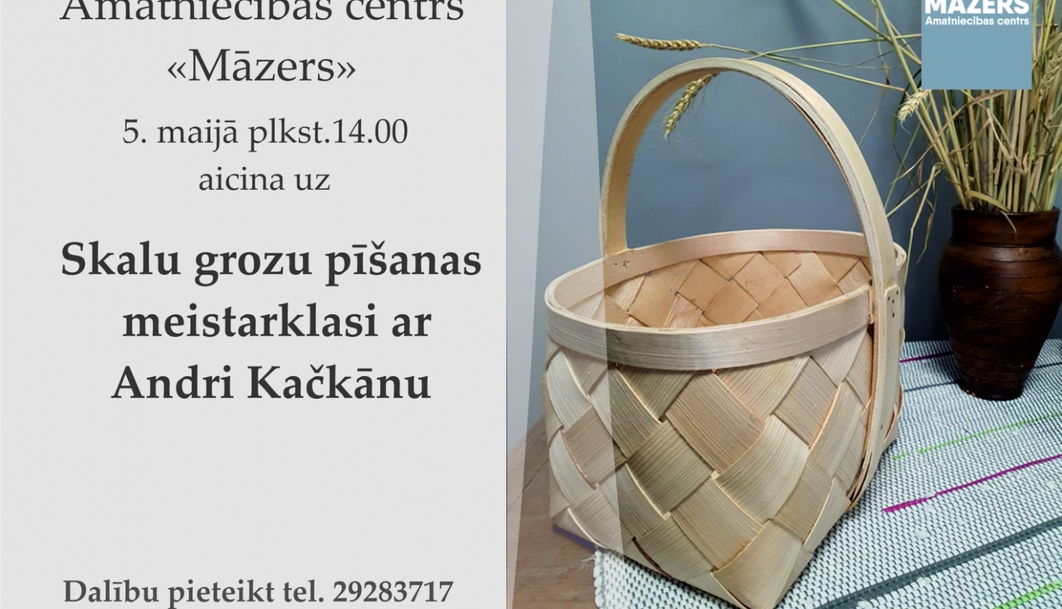Ikviens interesents ir aicināts piedalīties Amatniecības centra "Māzers" (Vīpes pagastā) organizētajā skalu grozu pīšanas meistarklasē ar Andri Kačkānu.