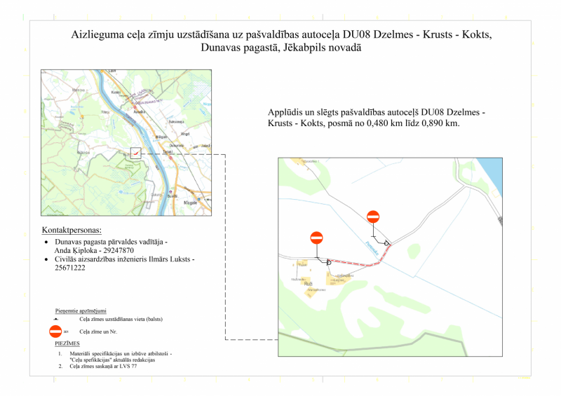 Applūdis ir pašvaldības ceļa DU08 Dzelmes - Krusts - Kokts, Dunavas pagastā posms. Aicinām būt uzmanīgiem un izvēlēties citu braukšanas maršrutu!
