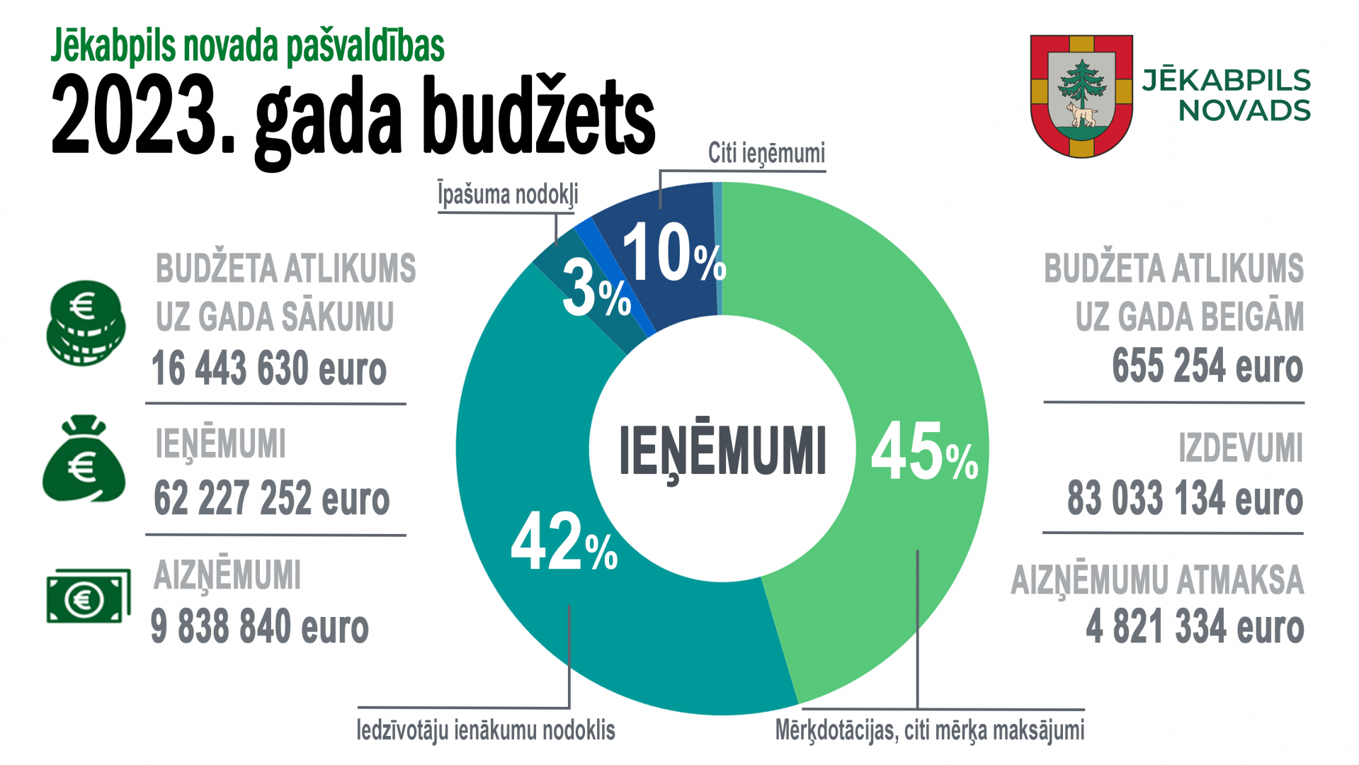 Šodien, 28. februāra Jēkabpils novada domes sēdē, tika apstiprināti saistošie noteikumi ”Par Jēkabpils novada pašvaldības budžetu 2023. gadam”. Jēkabpils novada pašvaldības budžeta ieņēmumi kopumā plānoti 62 miljoni 227 tūkstoši 252 eiro. Izdevumi plānoti - 82 miljoni 798 tūkstoši 891 eiro.