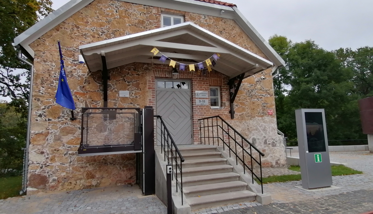 Ēkas pirmajā stāvā izveidota apmeklētāju apkalpošanas zāle informācijas saņemšanai, vietējo mājražotāju produkcijas un dažādu informatīvo reprezentācijas materiālu iegādei.Kā jau iepriekš tika minēts, Eiropas Savienības atbalstītā projektā Nr.5.5.1.0/19/I/003”Kultūrvēsturiskā mantojuma saglabāšana un attīstīšana kultūras tūrisma piedāvājuma pilnveidošanai Jēkabpilī” tiek atjaunots viens kultūras mantojuma objekts- Krustpils pils C korpuss, divi ar to saistīti tūrisma objekti-bijušā klēts, kurā izvietots Moderns apmeklētāju apkalpošanas centrs un smēde, kā arī uzcelts 1 jauns tūrisma objekts -Amatu māja Sēļu sētā.