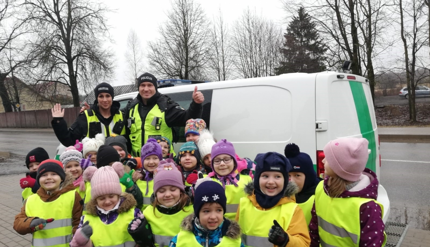 Tikšanās noslēgumā pašvaldības policija pasniedza noderīgas dāvanas- atstarojošās vestes katram grupiņas bērnam! Paldies par viesošanos un izrādīto interesi!