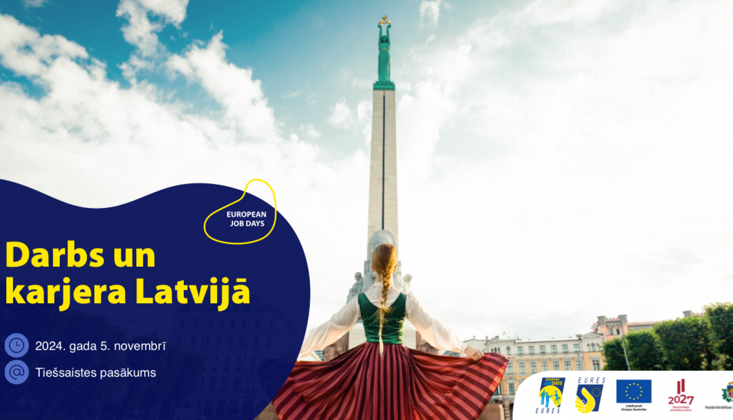 Darba devēji aicināti reģistrēties dalībai Nodarbinātības valsts aģentūras (NVA) un Eiropas nodarbinātības dienestu tīkla EURES rīkotajā tiešsaistes darba dienā „Darbs un karjera Latvijā”, kas šī gada 5. novembrī no plkst. 14.00 līdz 16.00 norisināsies Eiropas darba dienu platformā (www.europeanjobdays.eu). Dalība pasākumā ir bez maksas. Darba diena „Darbs un karjera Latvijā” tiek rīkota Eiropas Sociālā fonda (ESF) Plus projekta "EURES tīkla darbības nodrošināšana Latvijā" ietvaros.