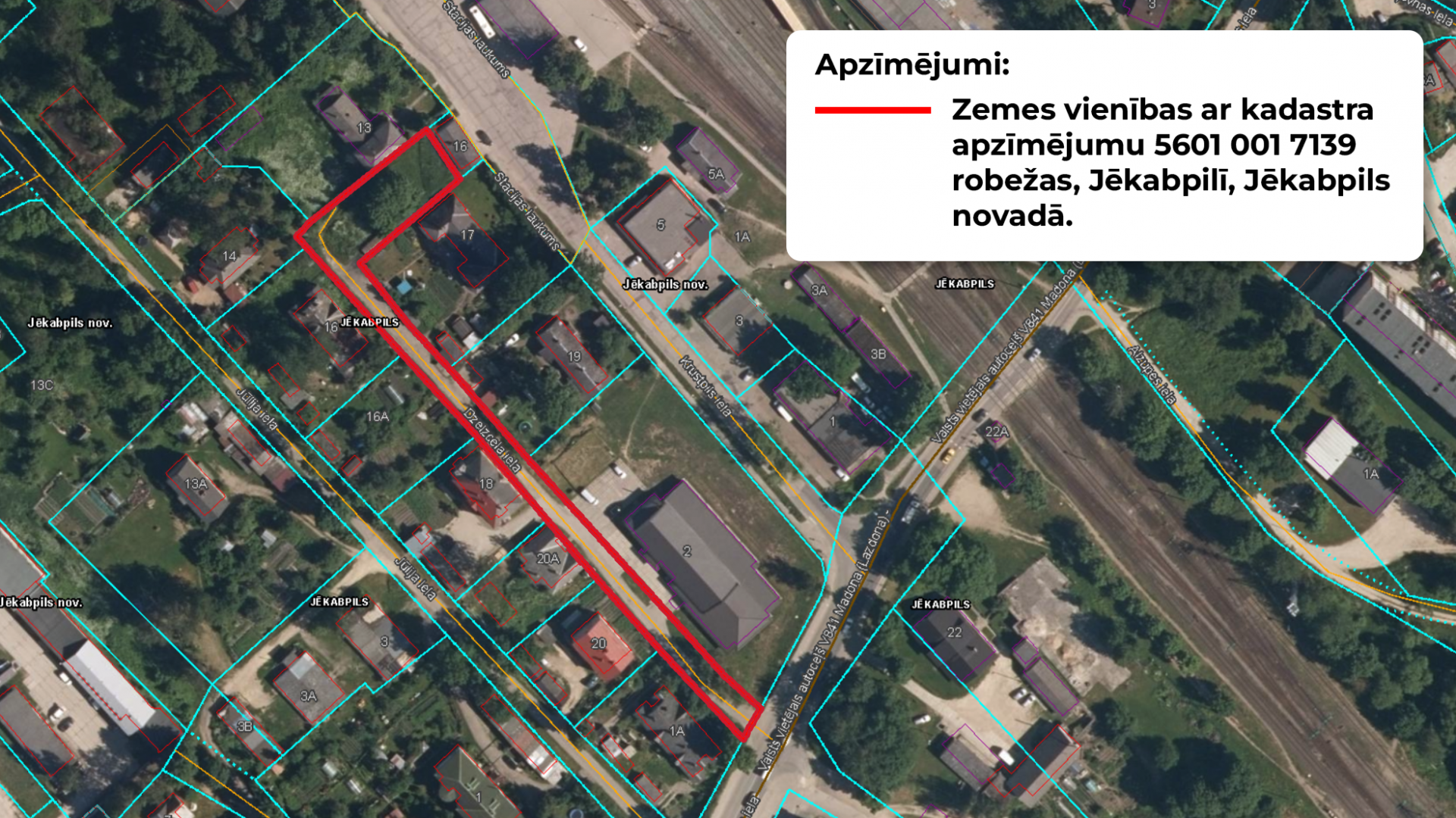 Pamatojoties uz iepriekš minēto, zemes vienībai ar kadastra apzīmējumu 5601 001 7114 tiek saglabāts nosaukums un adrese Dzelzceļa iela, Jēkabpils, Jēkabpils novads. Zemes vienībai ar kadastra apzīmējumu 5601 001 7139 tiek piešķirts jauns nosaukums un adrese. Zemes vienība ir iela‑strupceļš, kuras galā jāveido apgriešanās laukums.
