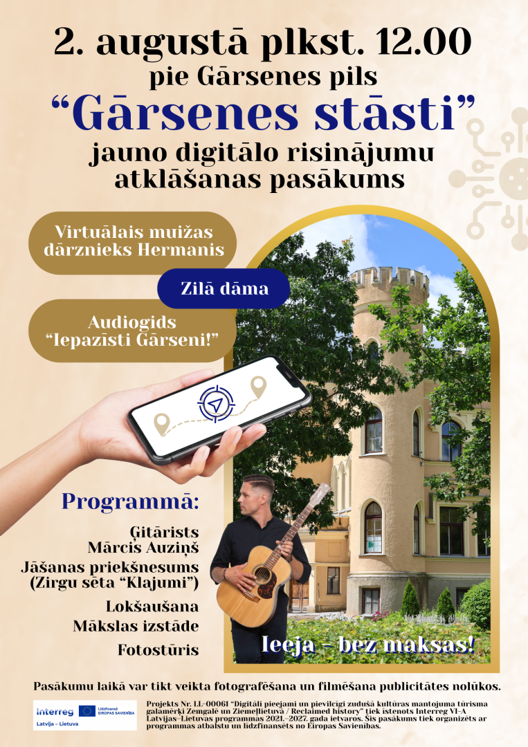 2. augustā plkst. 12.00 Gārsenes pils aicina uz svinīgu jauno digitālo risinājumu atklāšanas pasākumu.