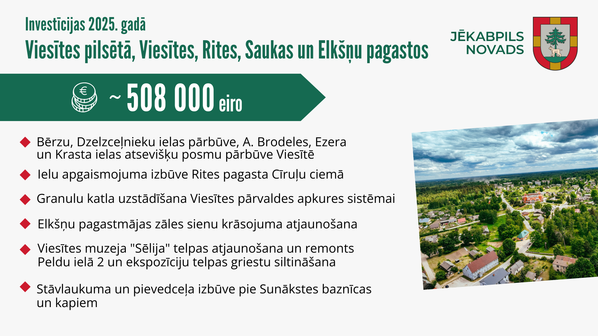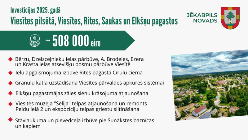 Iepazīstinām ar pašvaldībā plānotajām investīcijām Jēkabpils novada lauku teritorijās un Aknīstē, Viesītē 2025. gadā.