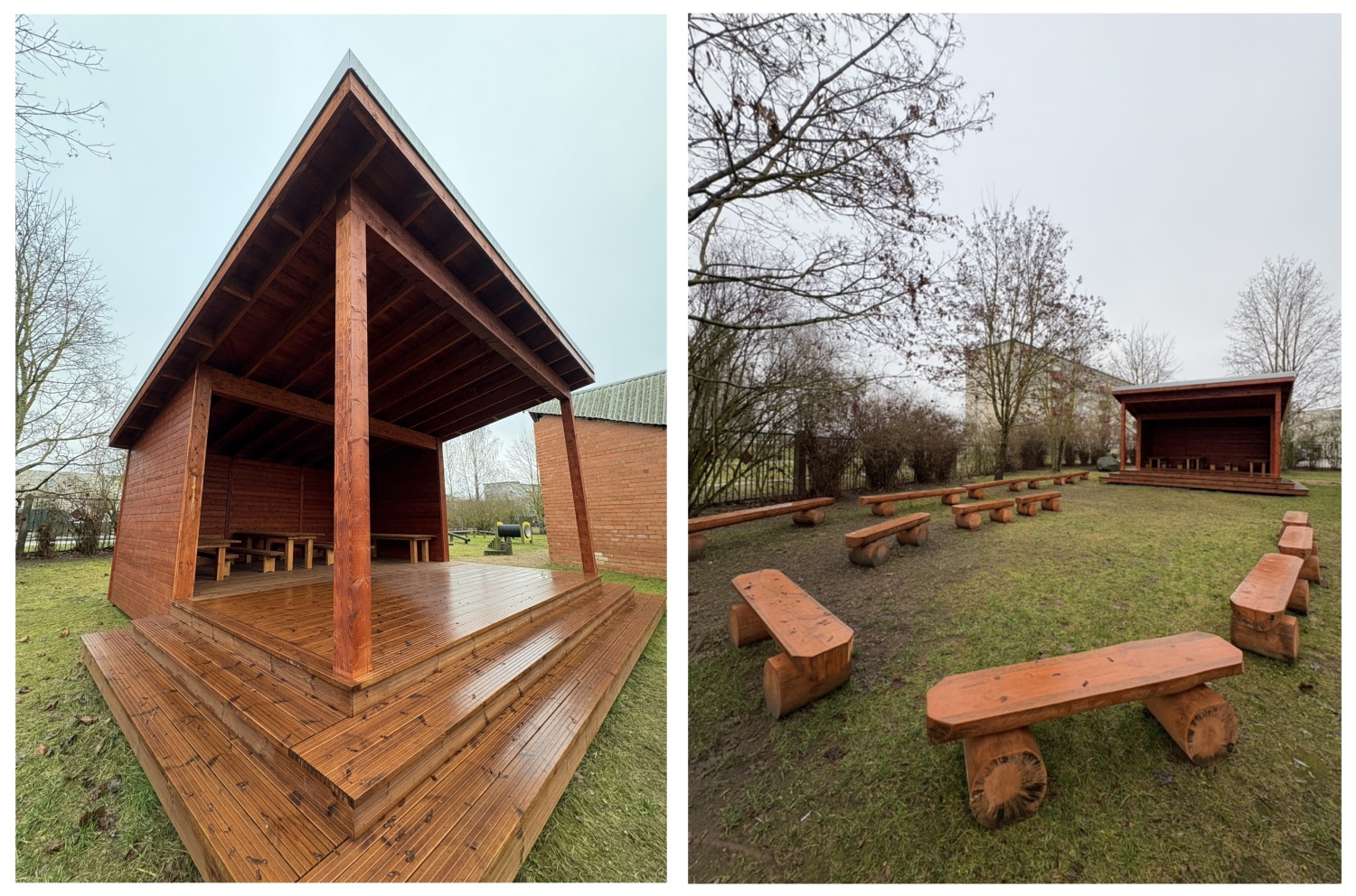 PII “Auseklītis” teritorijā izveidota ārtelpas skatuve ar jumtu un nodrošinātu elektrības pieslēgumu, kas paredzēta dažādu radošo, izglītojošo un kultūras aktivitāšu norisei. Skatuve aprīkota ar skatītājiem paredzētiem soliem, kā arī galdiem nodarbību un pasākumu īstenošanai, nodrošinot iespēju to izmantot gan ikdienas mācību procesā, gan plašāku pasākumu organizēšanā. Jumts un elektroapgāde ļauj kvalitatīvi nodrošināt skaņas, apgaismojuma un citu tehnisko risinājumu izmantošanu, tādējādi paplašinot pasākumu norises iespējas neatkarīgi no laikapstākļiem. Skatuve varēs kalpot kā kā kopienas aktivitāšu vieta, kur pulcējas bērni, pedagogi, vecāki un sadarbības partneri, veicinot kopīgu pasākumu organizēšanu, radošo izpausmi un kultūras dzīves attīstību pirmsskolas izglītības iestādes vidē.