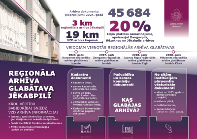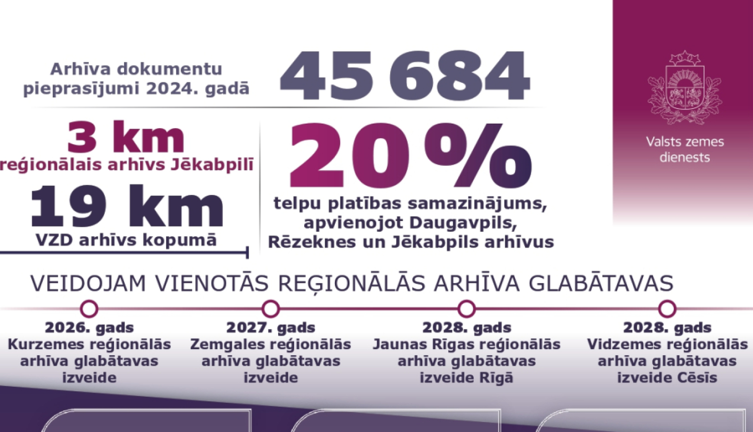 Ja saliktu vienā rindā visus Valsts zemes dienesta rīcībā esošos arhīvu materiālus, kopumā izveidotos 19 kilometrus garš ceļš. Reģionālajā arhīvā Jēkabpilī turpmāk glabāsies 3,6 kilometrus garš arhīva materiālu ceļš, kuros ir dati par Latgales reģionā esošajām būvēm un īpašumiem. Tie līdz šim atradās trīs dažādās vietās: Daugavpilī, Rēzeknē un Jēkabpilī. Šobrīd ar Valsts zemes dienesta darbinieku gādību, tie ir apkopoti un izvietoti vienuviet, lai glabātu to jaunās, modernās arhīva telpās, gādājot par dokumentu drošību.