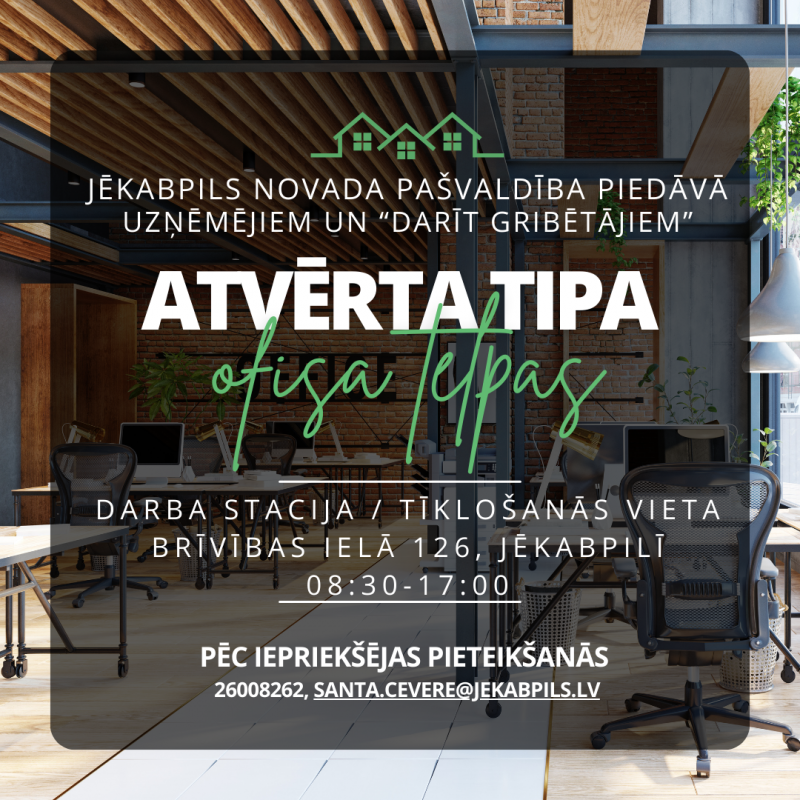 Jēkabpils novada pašvaldībā projekta “Zemgales uzņēmējdarbības vides attīstība un uzņēmēju konkurētspējas veicināšana” Nr. LVIII-068 “SMEPRO 2” ietvaros izveidotas atvērta tipa ofisa jeb “kopstrādes” telpas uzņēmējdarbības veicināšanai pašvaldībā. Projekta mērķis ir veicināt Zemgales plānošanas reģiona uzņēmējdarbības vides attīstību, stiprinot Zemgales uzņēmējdarbības centra un pašvaldību kapacitāti un uzlabojot uzņēmēju konkurētspēju.