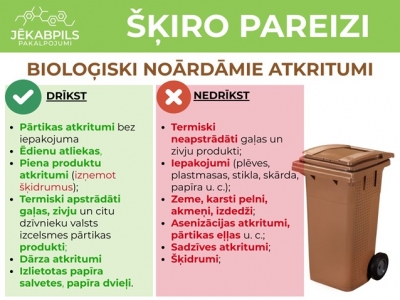 “Mēs turpinām attīstīt BIO atkritumu šķirošanas sistēmu, jo vēlamies panākt, lai jēkabpiliešiem atkritumu šķirošana būtu ērtāka un lētāka. Periodiski veicam iedzīvotāju informēšanas un izglītojošos pasākumus, lai iedzīvotājiem būtu skaidrs, kurus atkritumus šajos konteineros var ievietot, kur atrodas šādiem atkritumiem paredzētie konteineri un kā tos lūgt novietot arī savu māju tuvumā. Prieks, ka arvien vairāk jēkabpiliešu apzinās, ka mūsdienās vairs nepietiek tikai ar iepakojuma šķirošanu, un ir gatavi šķirot bioloģiskos atkritumus arī pilsētā” stāsta uzņēmuma atkritumu apsaimniekošanas speciāliste Inita Zaķe.