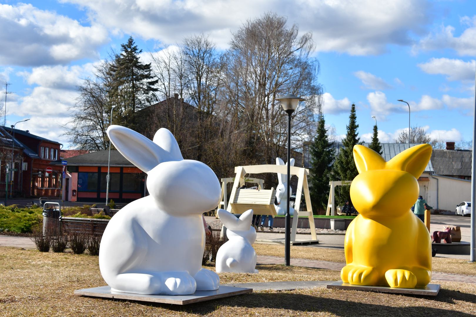 Arī Kena parkā izvietoti krāsaini saplākšņa zaķi, kas organiski iekļaujas apkārtējā vidē un aicina iedzīvotājus doties pastaigās, baudot pavasara atnākšanu.
