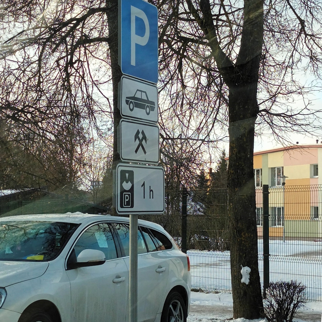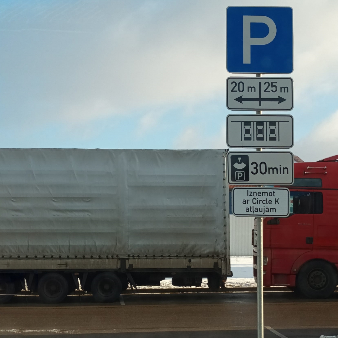 Automašīnu stāvvietās, kurās ir atļauts apstāties uz noteiktu laiku ir izvietota ceļa zīme Nr. 537 “Stāvvieta” un papildzīme Nr. 840 “Stāvēšanas laiks”, norādot, cik ilgi automašīnas minētajā stāvlaukumā drīkst atrasties (pārsvarā tās ir 30 min, bet pie veikala "Sedumi”, piemēram, 2 h ). Novietojot automašīnu šādā stāvvietā, tās salonā pie priekšējā stikla jānovieto informācija ar pulksteņa laiku, cikos transporta līdzeklis stāvvietā ir atstāts.