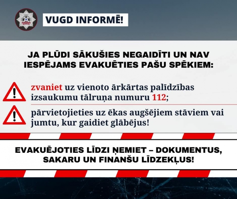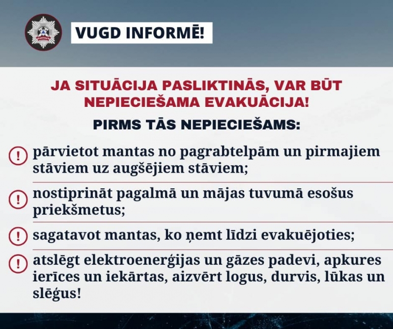 Esot informētam un sagatavojoties, uztraukums un apdraudējums ir mazāks, tāpēc aicinām iedzīvotājus sekot līdzi situācijas attīstībai, pašvaldības pārstāvju un operatīvo dienestu sniegtajai informācijai un būt gataviem, ja situācija pasliktināsies.