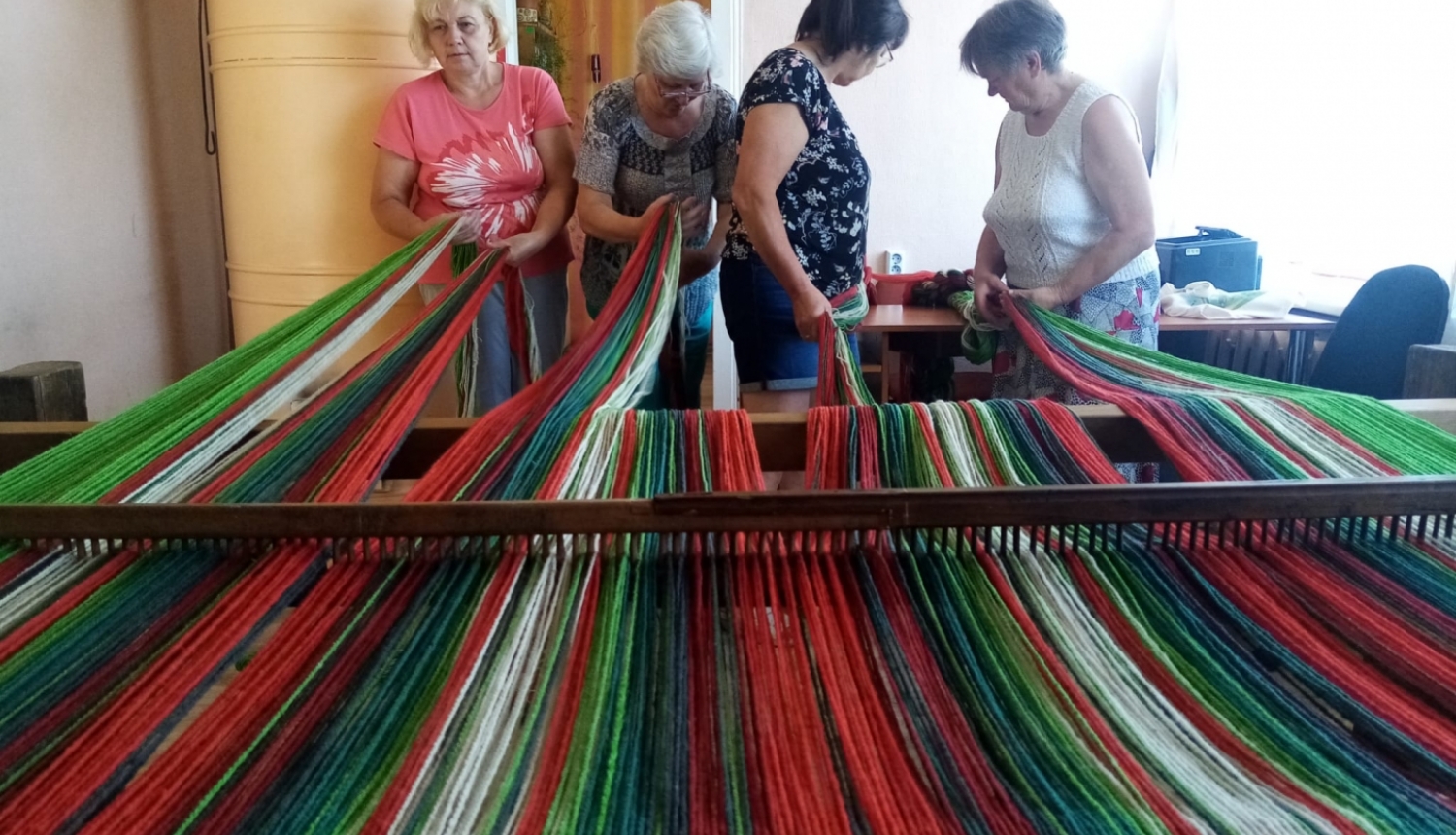 Leimaņos tiek realizēts Jēkabpils novada pašvaldības līdzfinansēts NVO projekts - tradicionālo lielo vilnas lakatu aušana.