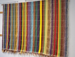 Tika iegādātas 2m platās stelles, kuras piederēja bijušās Krustpils studijas vadītājai Lapiņas kundzei. Paldies Gintam Audzītim par steļļu atvešanu no Jēkabpils! Stelles uzstādījām Leimaņu Tautas nama interešu telpā, kurā ilgu laiku bija arī apskatāma biedrības meiteņu austie darbi. Krāsaino dziju segas aušanai biedrības meitenes un bibliotekāre noziedoja no personīgajiem krājumiem. No pavasara līdz rudenim katram bija iespēja atnākt izvēlēties savu dzijas pavedienu, ieaust segā un piesiet uzrakstu no kurienes ir ieradies un kā sauc. Prieks bija par cilvēkiem, kuri vēlējās pamēģināt un izbaudīt aušanas procesu. Daudzi auda pirmo reizi, bet ieauda arī cilvēki, kuri ir mācījušies šo seno amatu. Patiess prieks, ka mūsu sadraudzības deķī ieauda gan vietējie, gan ekskursanti no visas Latvijas, gan arī no citām valstīm. Audēji bija no Jēkabpils, Lapmežciema, Rīgas, Aizkraukles, Mineapolisas (ASV), Floridas, Čikāgas, Kuldīgas, ukraiņu biedrības “Javir” jaunieši, ukraiņi, kas patvērušies no kara, kā arī bija audēji no Zasas, no Rubeņiem, Kalnaciema, vietējie bibliotēkas apmeklētāji, darbinieki, pašdarbnieki un biedrības audējas. Sirsnīgs PALDIES visiem!!! Mums gala rezultātā ir noausts 2m plats un 2.70 metri skaists un krāsains sadraudzības deķis, tikpat krāsains kā mūsu dzīve. Deķis kādu laiku būs apskatāms Leimaņu Tautas nama izstāžu zālē.