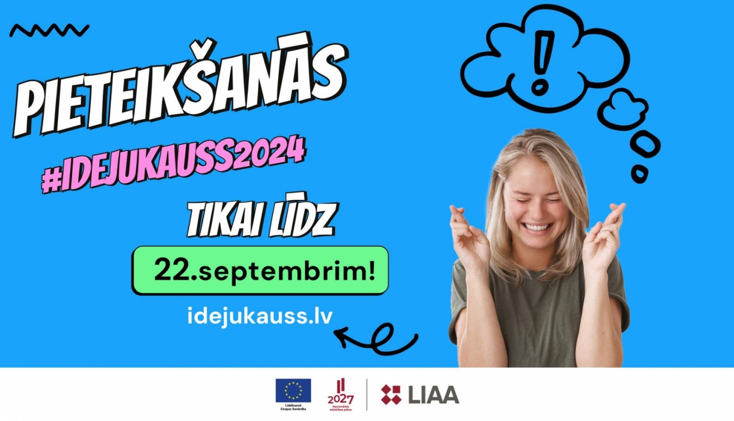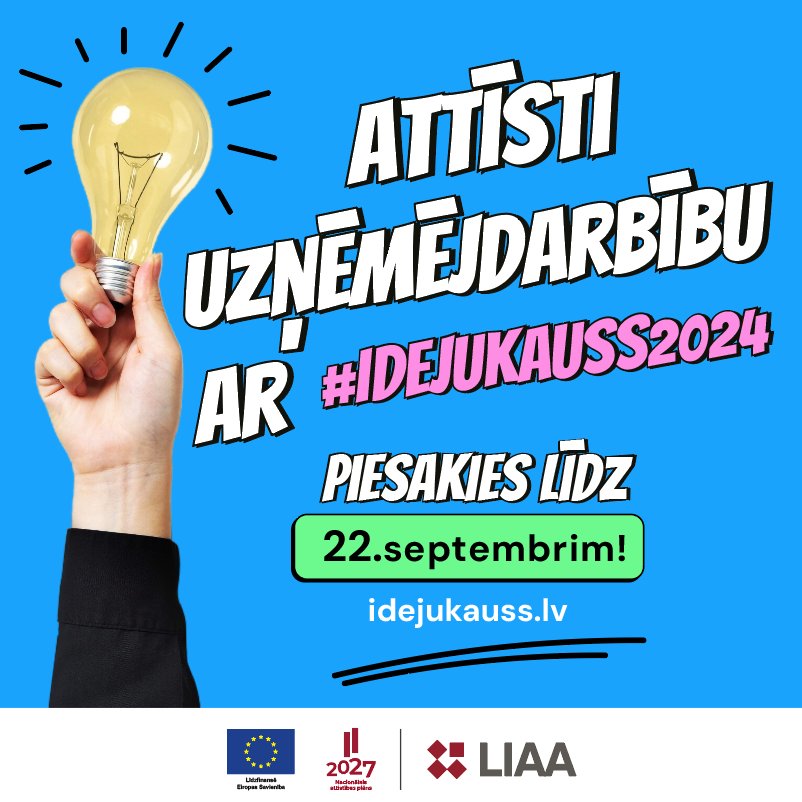 Pieteikšanās līdz 22. septembrim, šeit: https://business.gov.lv/pakalpojumi/atbalsts-jaunu-ideju-autoriem-ideju-kauss-2024