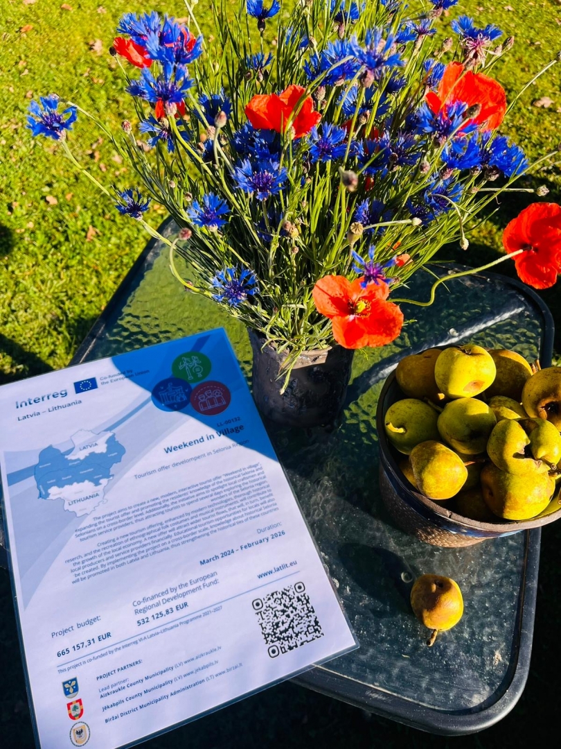 Projekts Nr. LL-00132 Tūrisma piedāvājuma attīstība Sēlijā/ Tourism offer development in Selonia Region/ Weekend in Village tiek īstenots Interreg VI-A Latvijas-Lietuvas programmas 2021. -2027. gadam ietvaros. Projekta kopējais finansējums ir 665 157,31 EUR (t.sk. Jēkabpils novada pašvaldības finansējums ir 210 024,17 EUR).