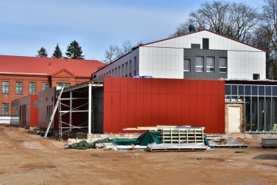 Sporta zālē izbūvē inženierkomunikācijas. Vienlaikus tiek attīrīta fasāde un atjaunoti fasādes skārda elementi.