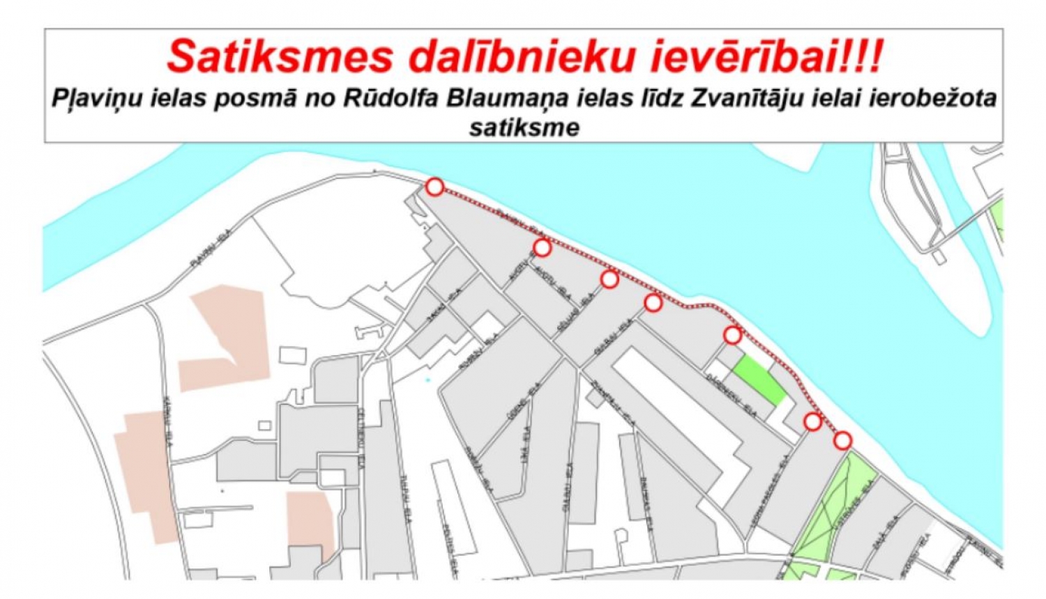 Lai samazinātu transportlīdzekļu plūsmu un nodrošinātu drošību gājēju kustībai, no 12.janvāra tiks ierobežota transportlīdzekļu satiksme Jēkabpilī, Pļaviņu ielās posmā pa dambi, no Zvanītāju ielas līdz Rūdolfa Blaumaņa ielai!