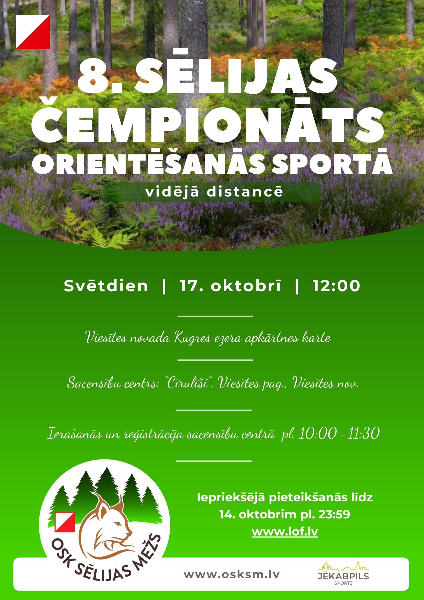 Lai popularizētu orientēšanās sportu Sēlijas iedzīvotāju vidū, svētdien, 17. oktobrī Viesītes novada Kugres ezera apkārtnē notiks 8. Sēlijas čempionāts orientēšanās sportā vidējā distancē.