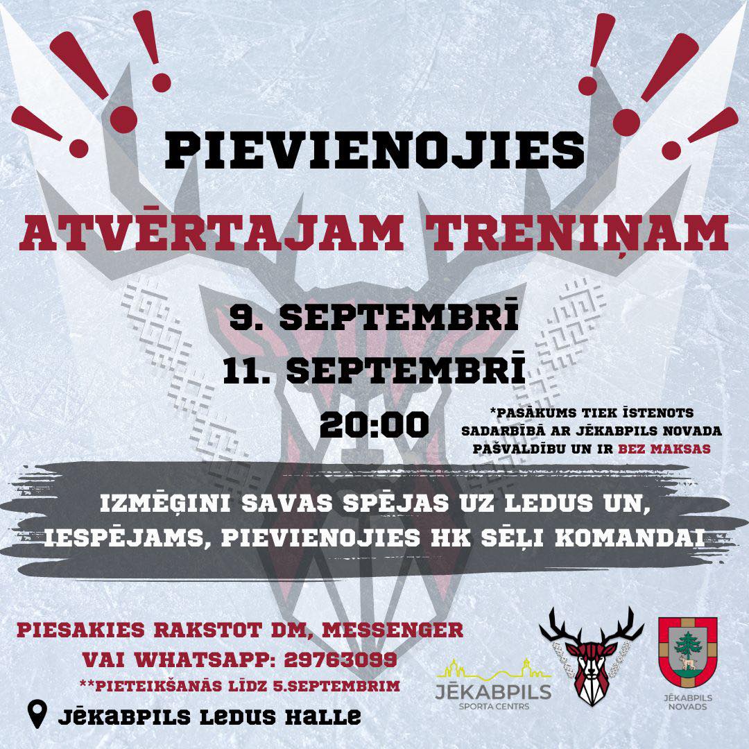 Biedrība “HK Sēļi” projekta “Atvērtais treniņš HK SĒĻI 2024/2025” ietvaros aicina 9. un 11. septembrī plkst. 20:00 izmantot iespēja piedalīties atvērtajā treniņā un izmēģināt savas spējas uz ledus. Lai pieteiktos, jāsazinās ar “HK Sēļiem” sociālajos tīklos vai zvanot uz numuru 29763099. Treniņam nepieciešams slidošanai atbilstošs apģērbs. Ja Tev ir hokeja ekipējums (ķivere, slidas, aizsargi, nūja, cimdi u.t.t.), noteikti ņem to līdzi! Ja ekipējuma nav, lūdzu, norādi to pieteikumā – mēs centīsimies to piemeklēt vai arī būs iespēja to aizņemties hallē (slidas, ķivere).