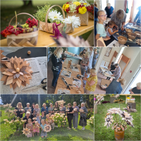 Biedrība “Akācijas Plus” 14. augustā aizvadīja noslēdzošo, trešo nodarbību projekta “Seno amatu atdzīvināšana- skalu grozu pīšanas meistarklase” ietvaros, kurā gan lieli, gan mazi no skaliem izgatavoja ziedus. Tas bija interesants radošais process, jo visi ar aizrautību kombinēja zieda lapiņas. Meistarklasē radītos grozus un puķes varēja apskatīt ziedu izstādē "Vasaras prieks groziņā" pie Leimaņu tautas nama un vēlāk arī Leimaņu tautas namā.