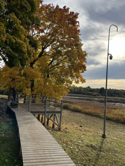 • Atpūtas vietā pie Marinzejas ezera uzstādīta pontonu laipa, pievesta smilts peldvietā, izpļautas niedres un zāle. (Sk.foto).