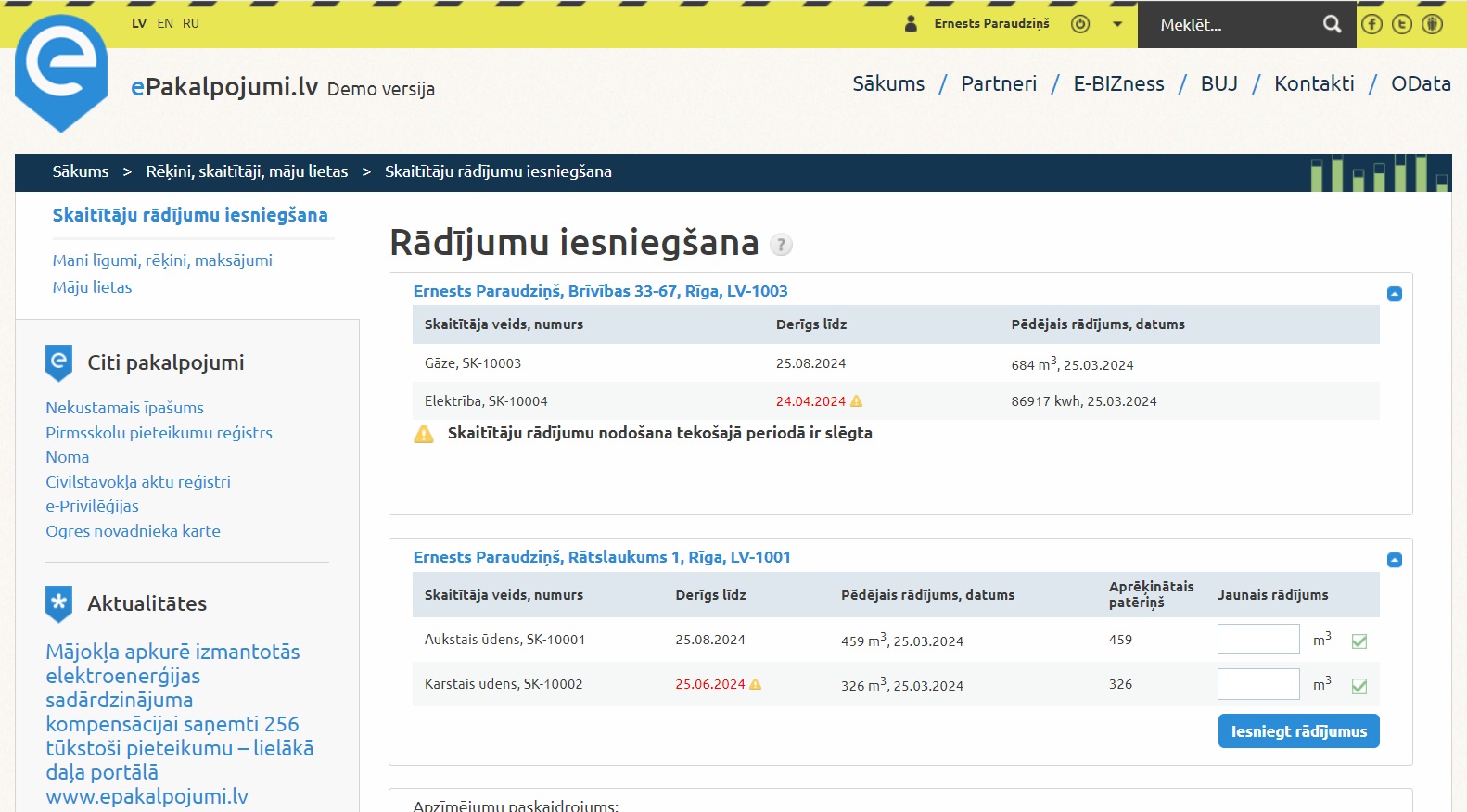 - Iesniedziet skaitītāju rādījumus (kuriem pakalpojumus nodrošina Jēkabpils novada pašvaldība): Ērti iesniedziet skaitītāju rādījumus ūdens un elektrības patēriņam.