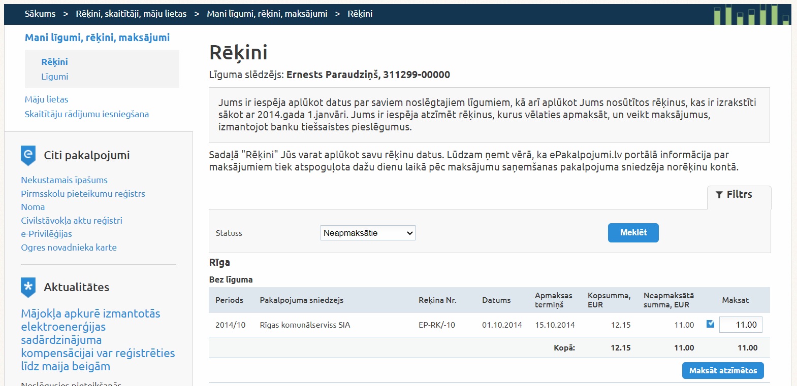- Apskatiet līgumus un rēķinus: Piekļūstiet saviem līgumiem un detalizētiem rēķiniem par pakalpojumiem, kā arī apmaksājiet neapmaksātos rēķinus.