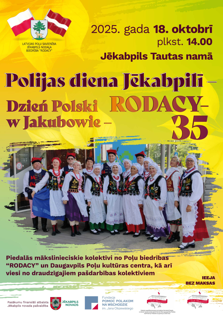 2025. gada 18. oktobrī Poļu biedrība "RODACY" rīko koncertu Jēkabpils Tautas namā. Piedalās mākslinieciskie kolektīvi no Poļu biedrības "RODACY" un Daugavpils Poļu kultūras centra, kā arī viesi no draudzīgajiem pašdarbības kolektīviem.