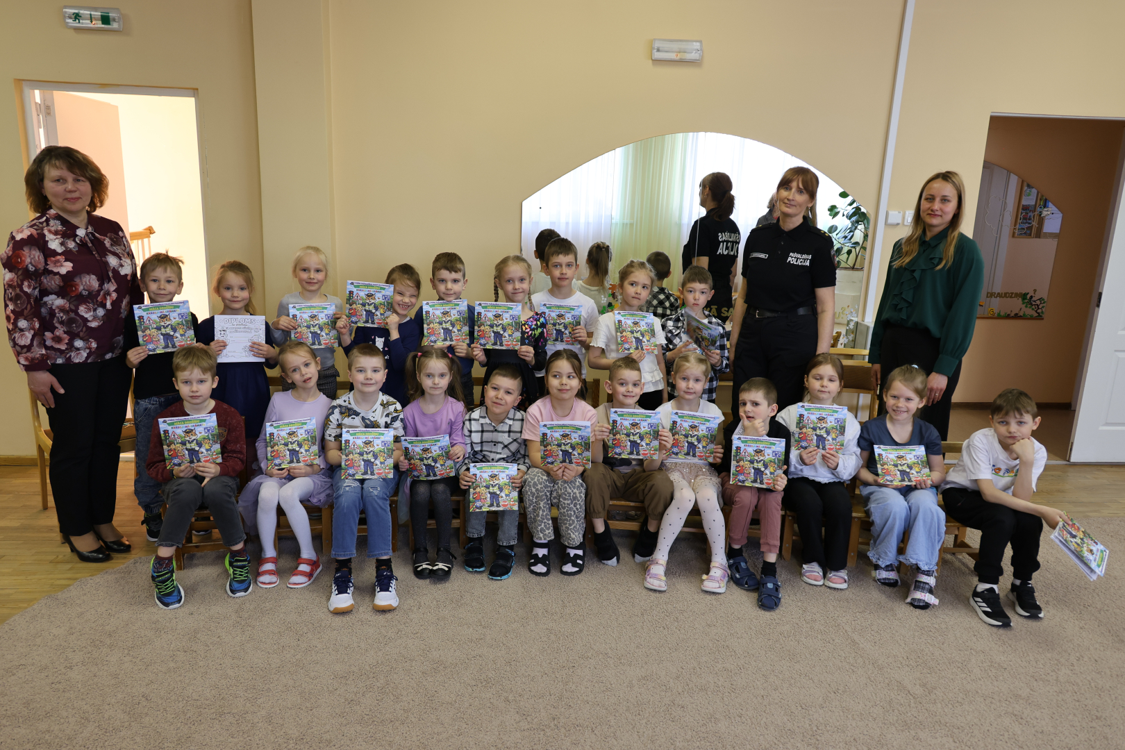 Tikšanās sākumā katrs bērns saņēma dāvanā radošu un izglītojošu krāsojamo grāmatiņu, kuras galvenais varonis ir bērnu draugs – policists Lūsēns. Kopā ar pašvaldības policijas inspektori bērni soli pa solim izskatīja katru grāmatiņas lappusi, pārrunājot tajā attēlotās situācijas un skaidrojot, kā rīkoties droši dažādās ikdienas situācijās. Bērni ar interesi klausījās, aktīvi iesaistījās sarunās un labprāt dalījās savā pieredzē.